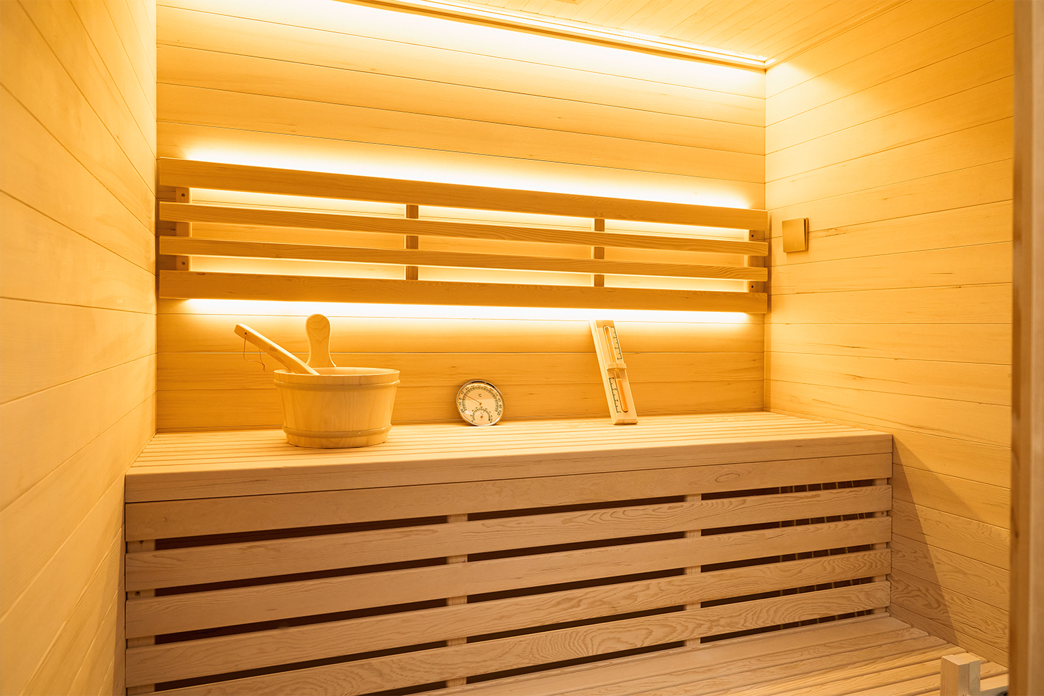 The classic interior is defined by a calm, welcoming foundation. Soft, cool white mood lighting cascades from the roof and glows elegantly from behind the user backrest. To create an open and balanced internal space, the sauna features an expansive tempered and toughened safety glass front. This glass is precision-engineered to retain high heat while allowing natural light to flow through, seamlessly blending the sauna into any home interior. The internal layout follows traditional ergonomics, ensuring your wellness routine is as comfortable as it is stunning.