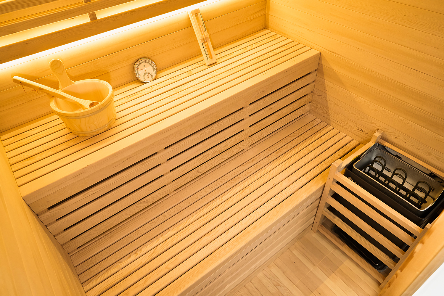 Featuring a lower- and higher-tier bench layout, this unit’s sizing allows 4 people to comfortably use and enjoy the sauna experience. This layout also offers more options and flexibility when used by fewer occupants.